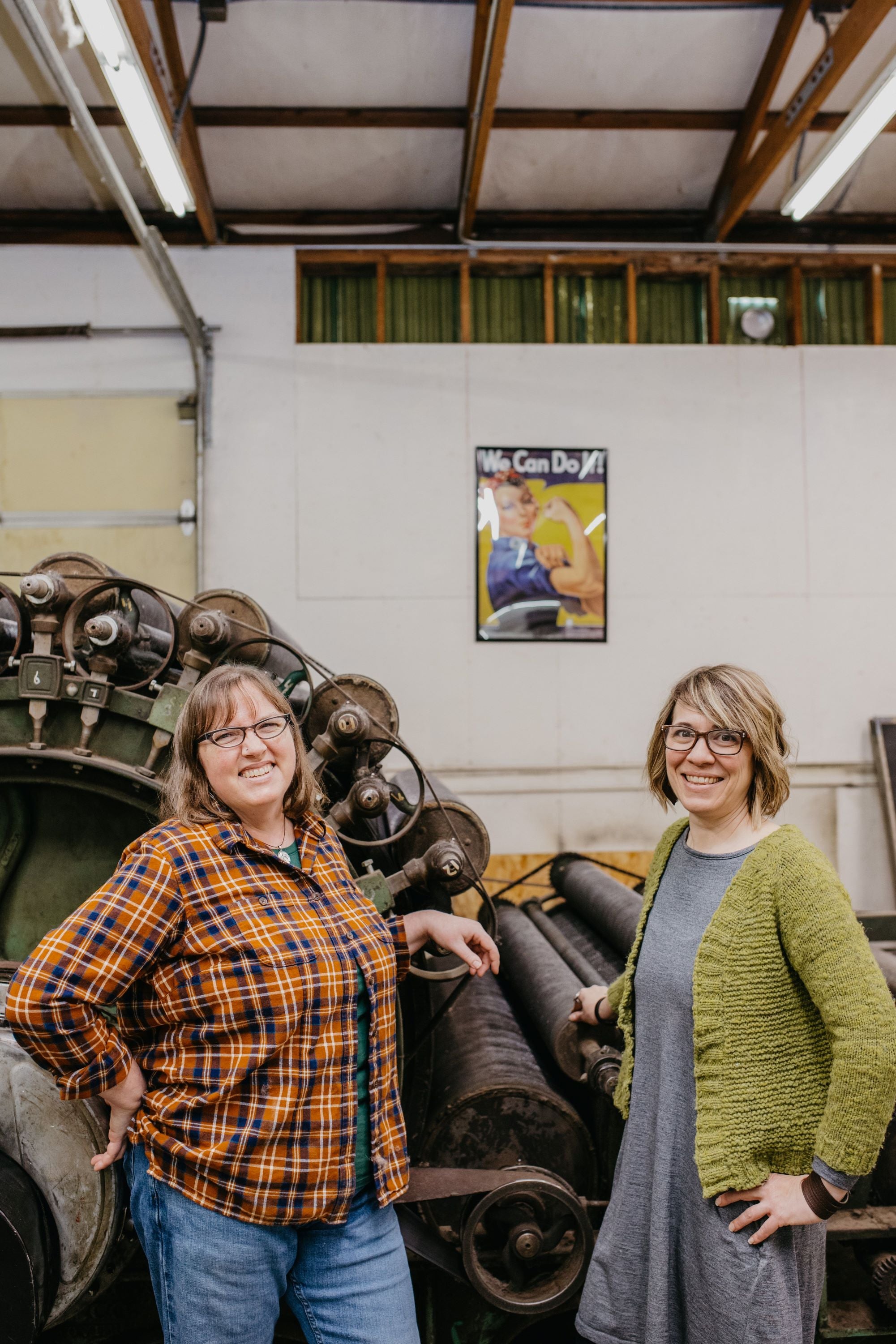 The mill is owned and operated by Anna, a life-long fiber arts enthusiast, and Jessica, a former technical editor in the knitting industry. Together, they purchased a 1922 Davis & Furber industrial carder in 2022 (lovingly named 'Rosie'). It is the heart of the mill, uniting their love of craft and desire to revitalize local fiber processing with forward-thinking business practices, and powered by relationships.