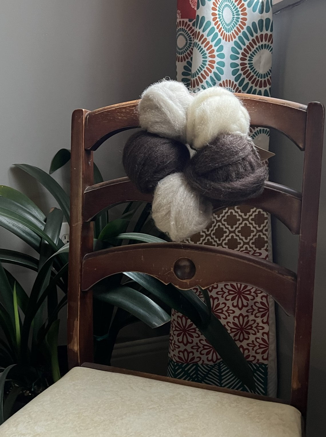A colorful blend of naturally colored and dyed Puget Sound wool. Great for blending or needle felting projects. Rainbow assortment is approximately 75g total in a rainbow of 8 colors. Hang it in your studio as a lovely decoration too! Ideal for beginner spinners with bite-sized portions of colors to play with.