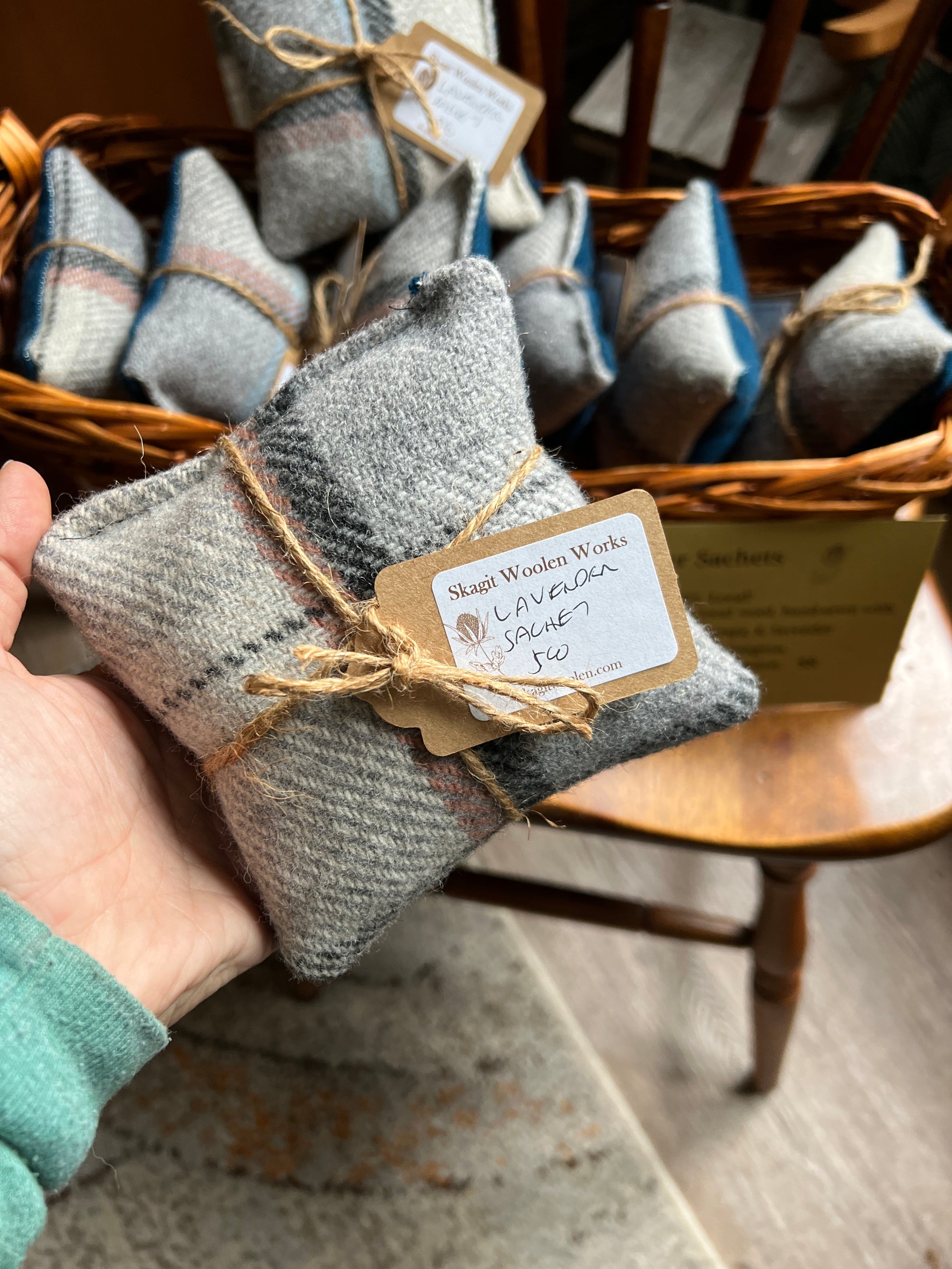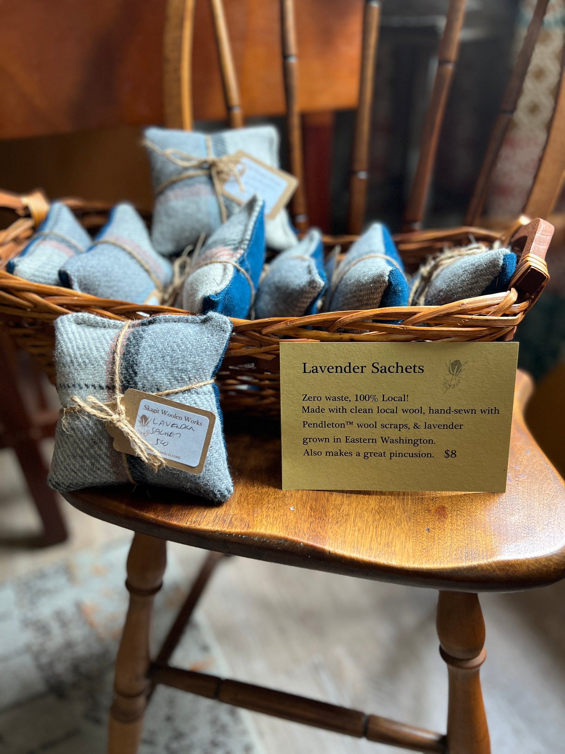 Zero waste, 100% local! Made with clean local wool, hand sewn with wool fabric scraps from American mills, & lavender grown in Eastern Washington. Use in your clothing drawers, fiber stash, or as a pin cushion. Small size approximately 4.5x4.5"; medium size approximately 6x6".
