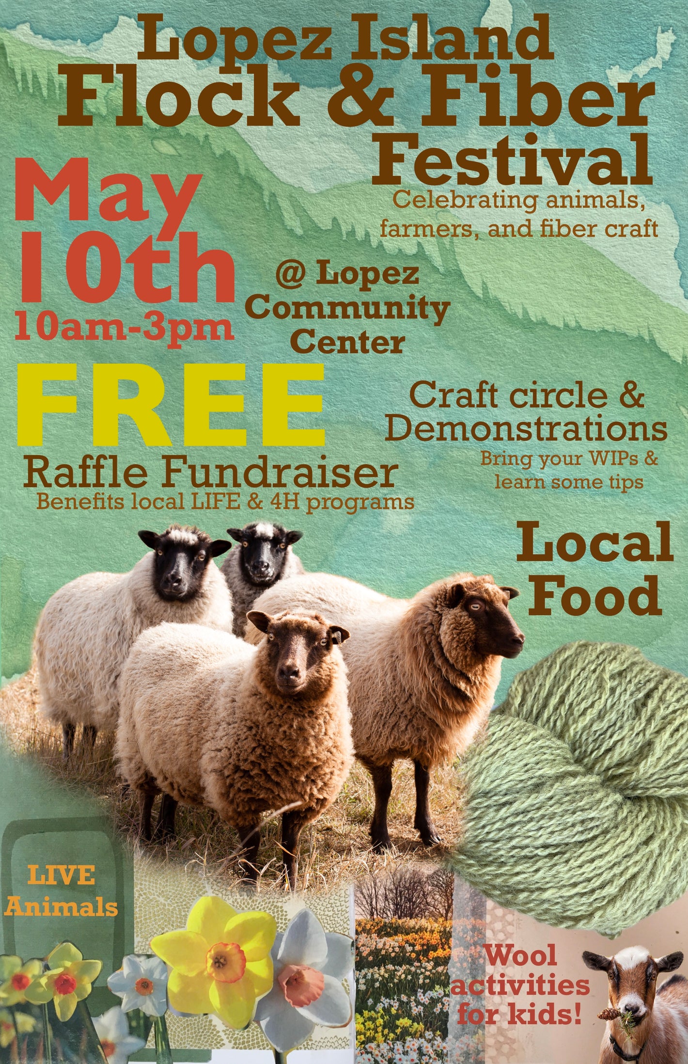 For more informationWe're so excited that this event is back! We'll see you Sunday, May 10, from 10 am - 3 pm at the Lopez Island Community Center. Celebrate animals, farmers, and fiber crafts at the Lopez Island Flock and Fiber Festival. This is a free event with a craft circle, demonstrations, local flock and fiber products, Lopez food vendors, and a raffle fundraiser. We look forward to seeing you there!