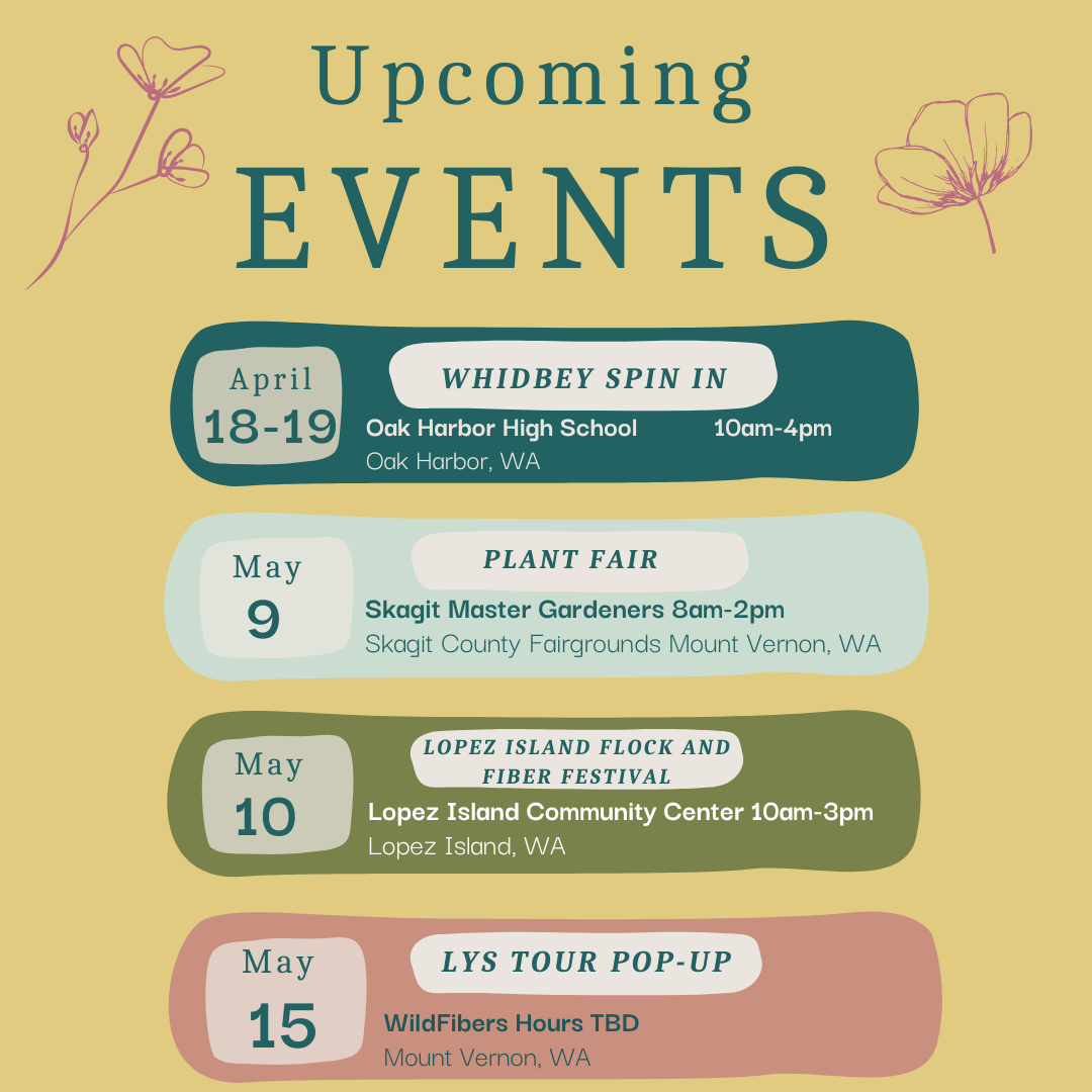 For more informationWe'll be heading over to Oak Harbor High School for the Whidbey Weavers Guild Spin-In! The event is Saturday, April 18 & Sunday, April 19, 10 am - 4 pm.