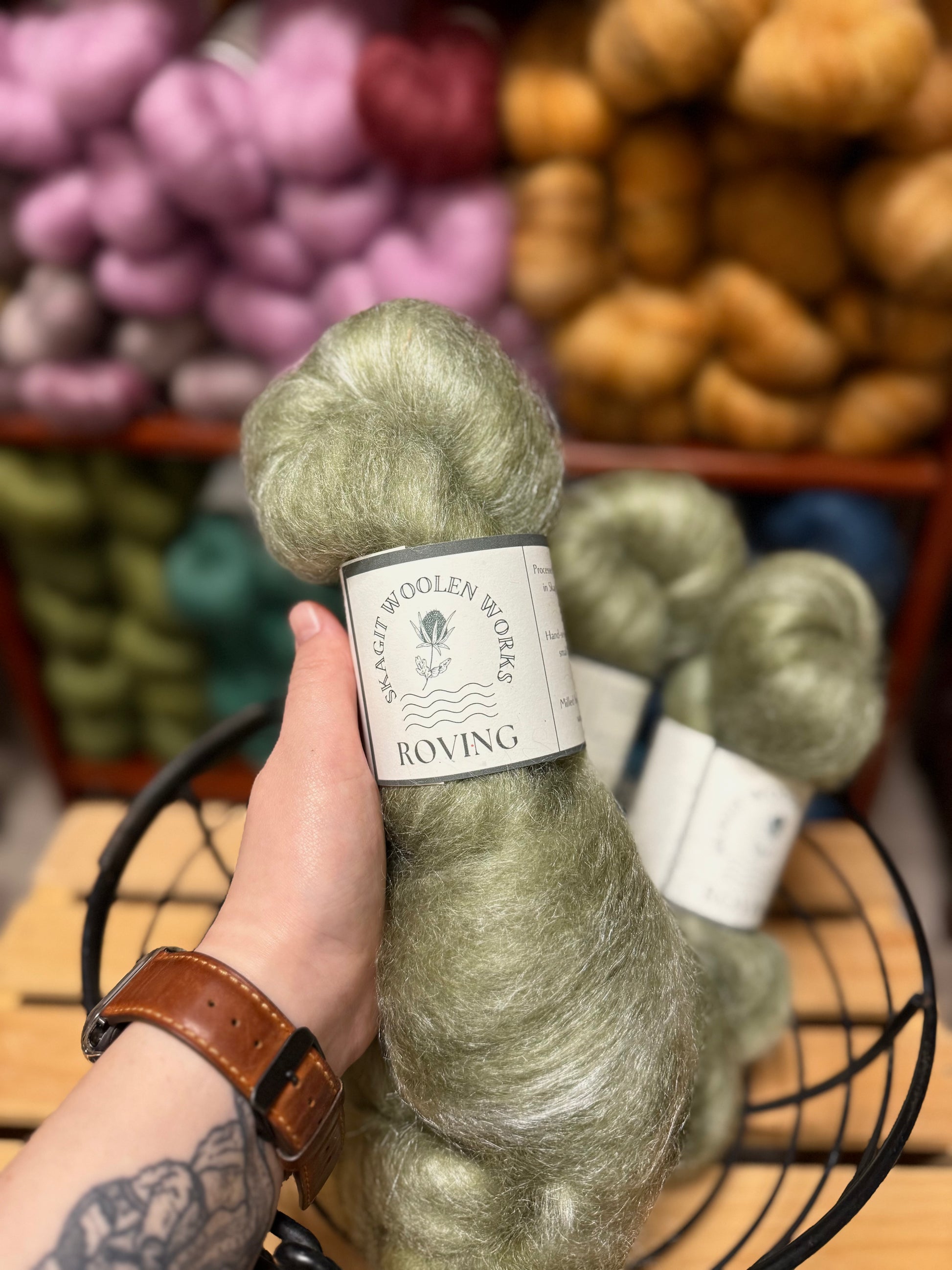 - Border Leicester / Mohair (85/15) - Border Leicester from Snohomish County and lustrous dyed mohair.