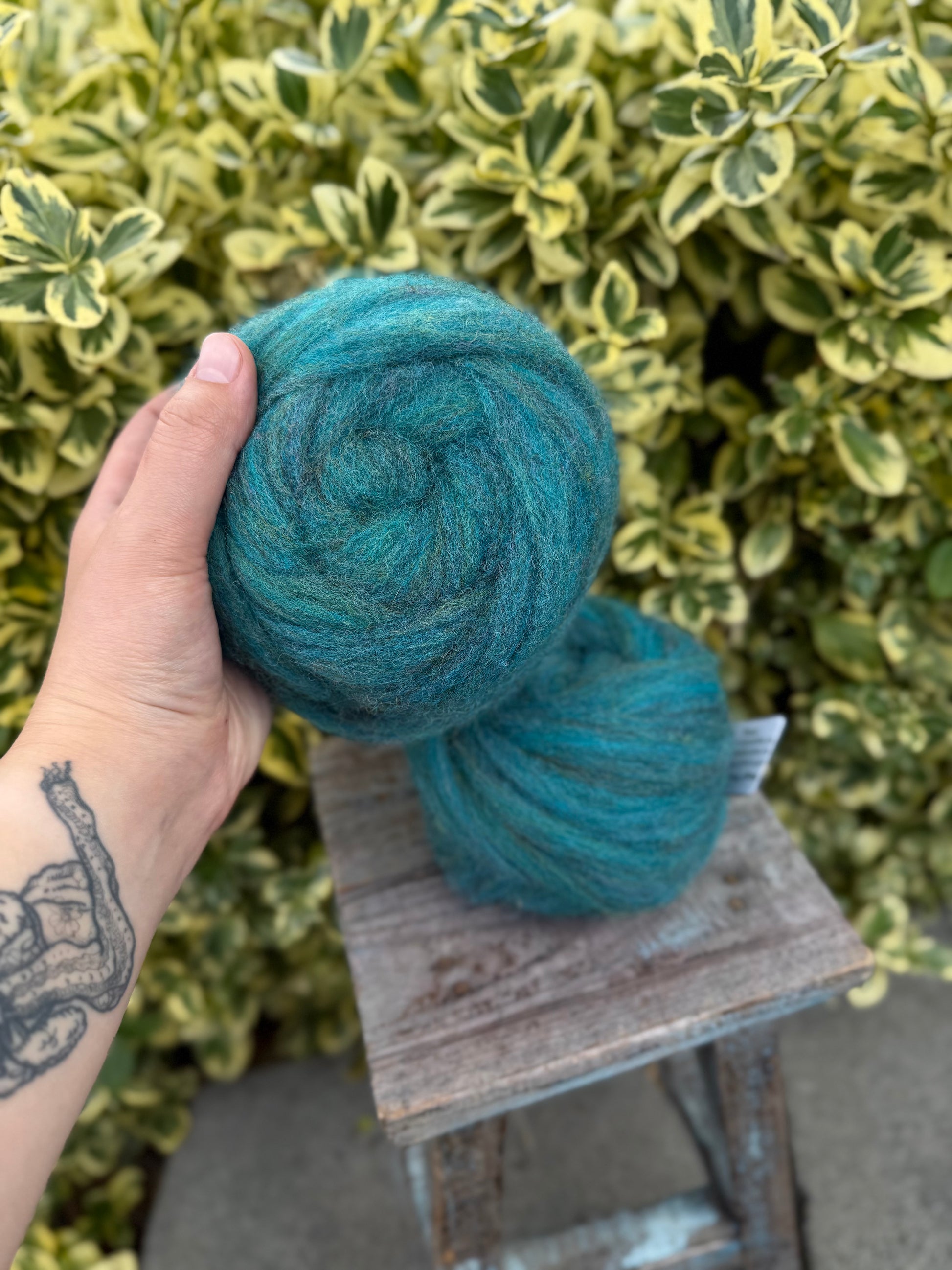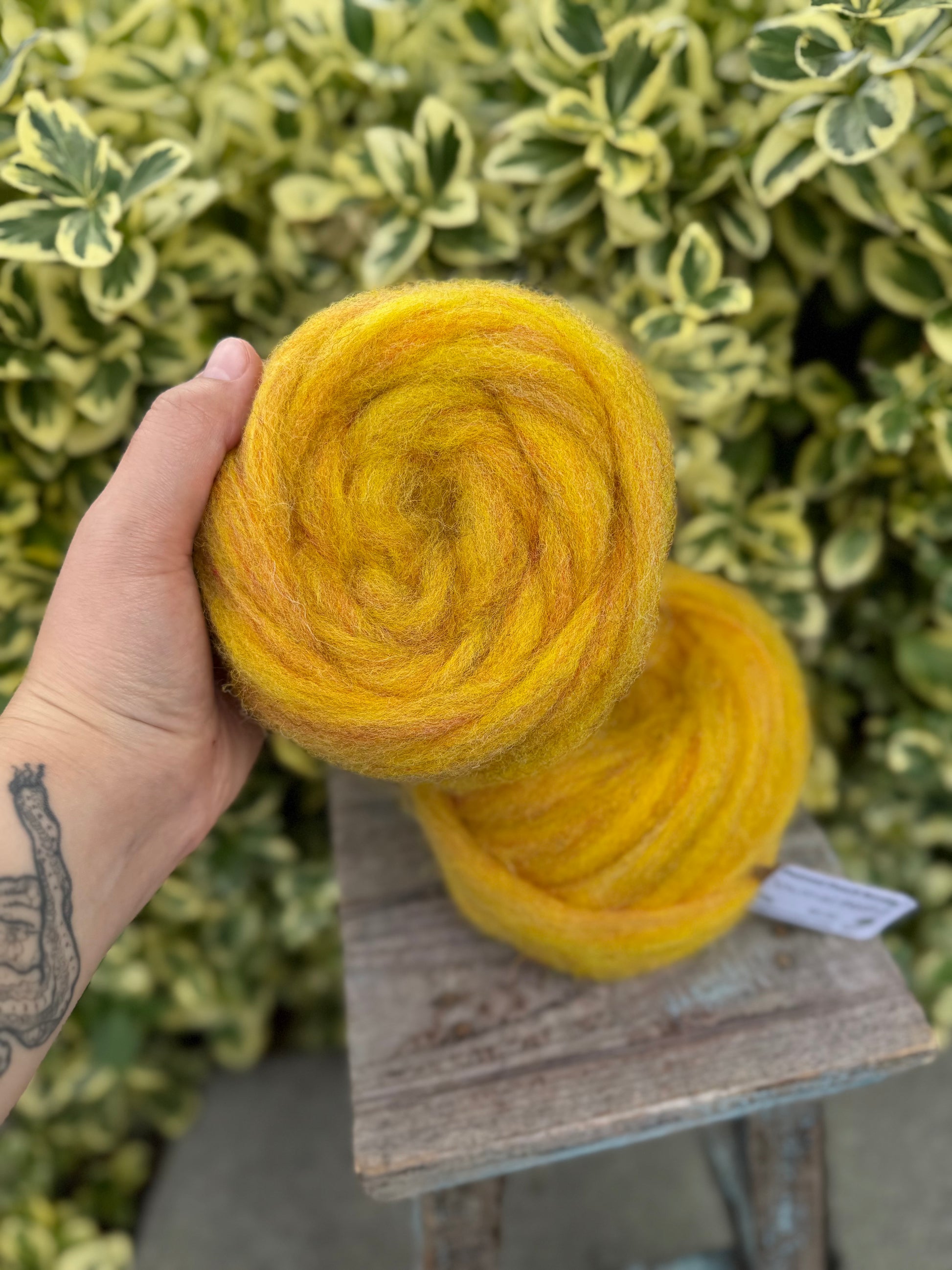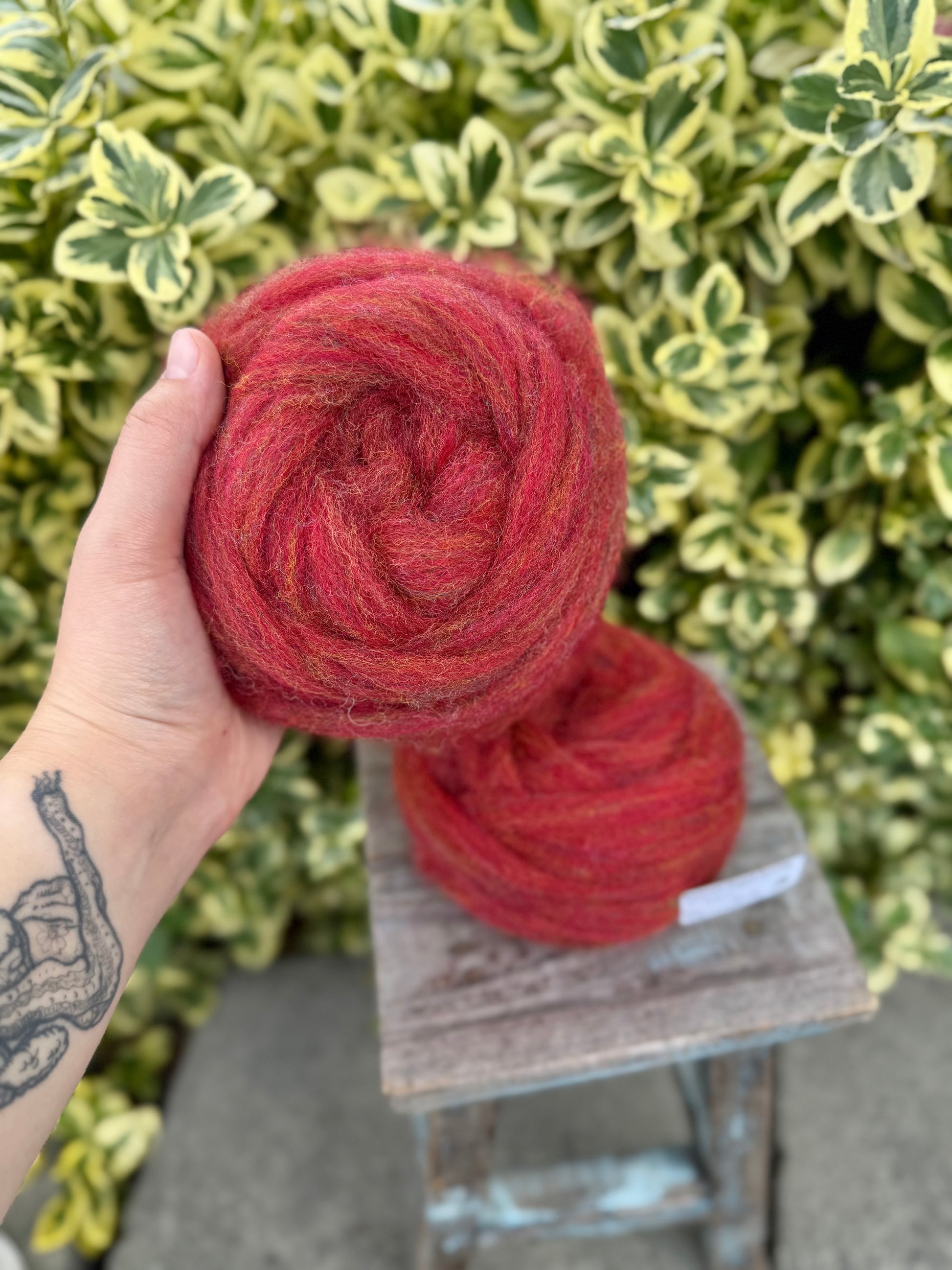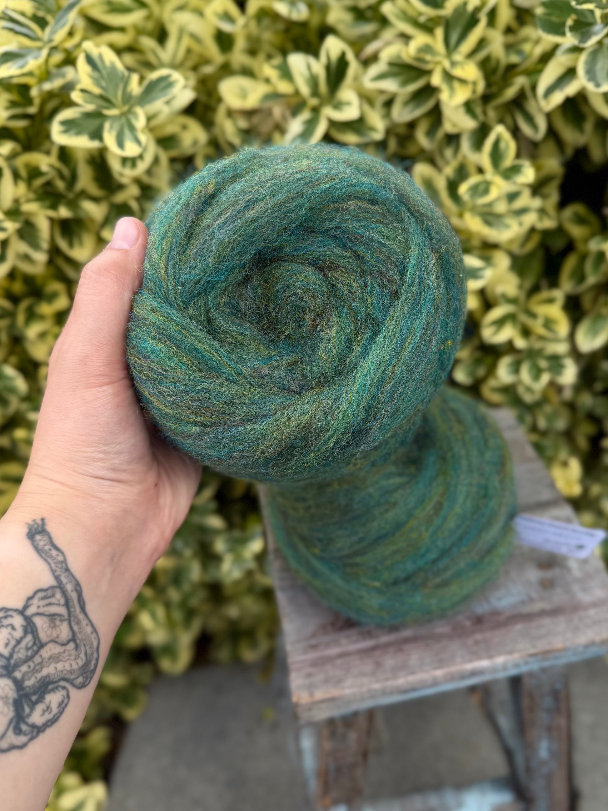 50g pencil roving. East Friesian wool, a dairy sheep flock from the Skagit Valley. Dyed in the locks, blended, and processed in the Skagit Valley. Great for handpinning and needle felting. The heathered colors make it a joy to spin, and newer spinners find it fun and easy to work with. Looking for a variety of colors to try? Check out our Rainbow Felting wreaths - 8 different colors to play with!