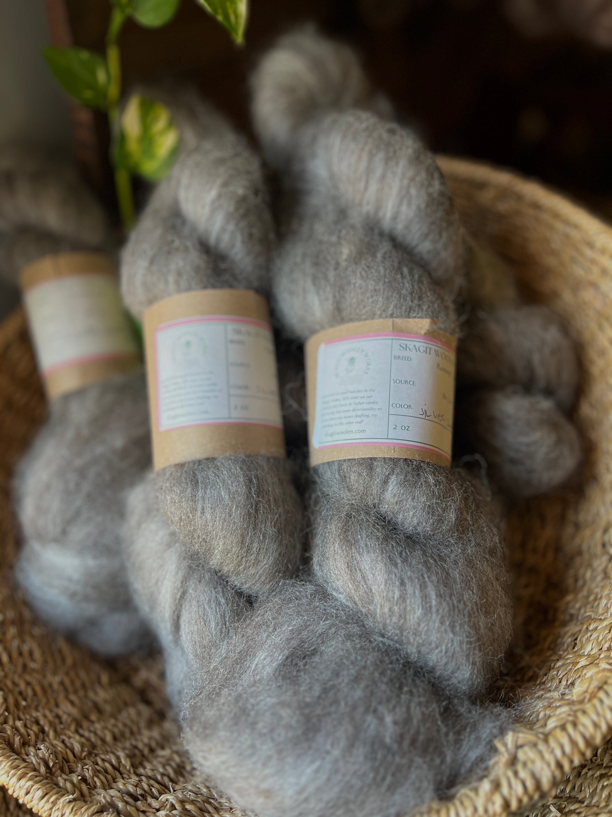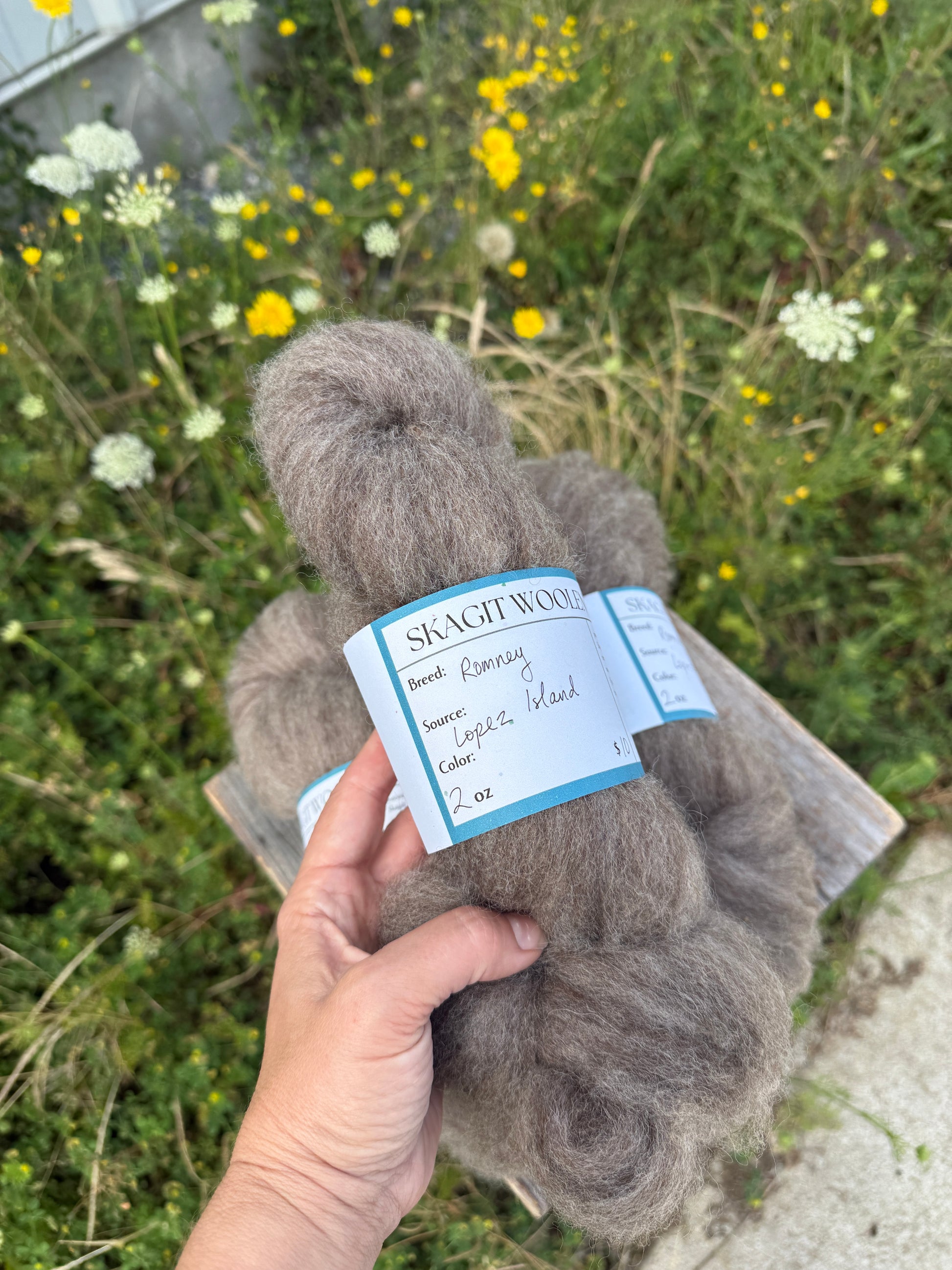 Romney - sourced from Lopez Island; a favorite of many spinners; versatile for many fiber projects, easy to spin, and comes in a variety of beautiful natural colors.